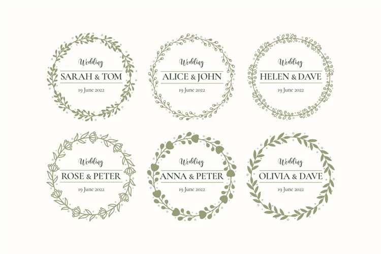Feminine floral weeding logo collection including different file types.