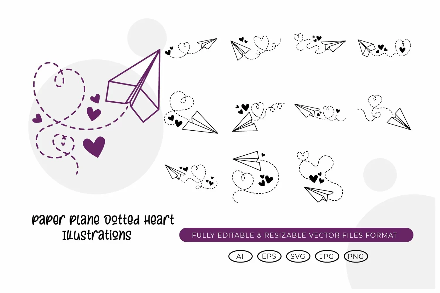 Paper Plane Dotted Heart Illustrations