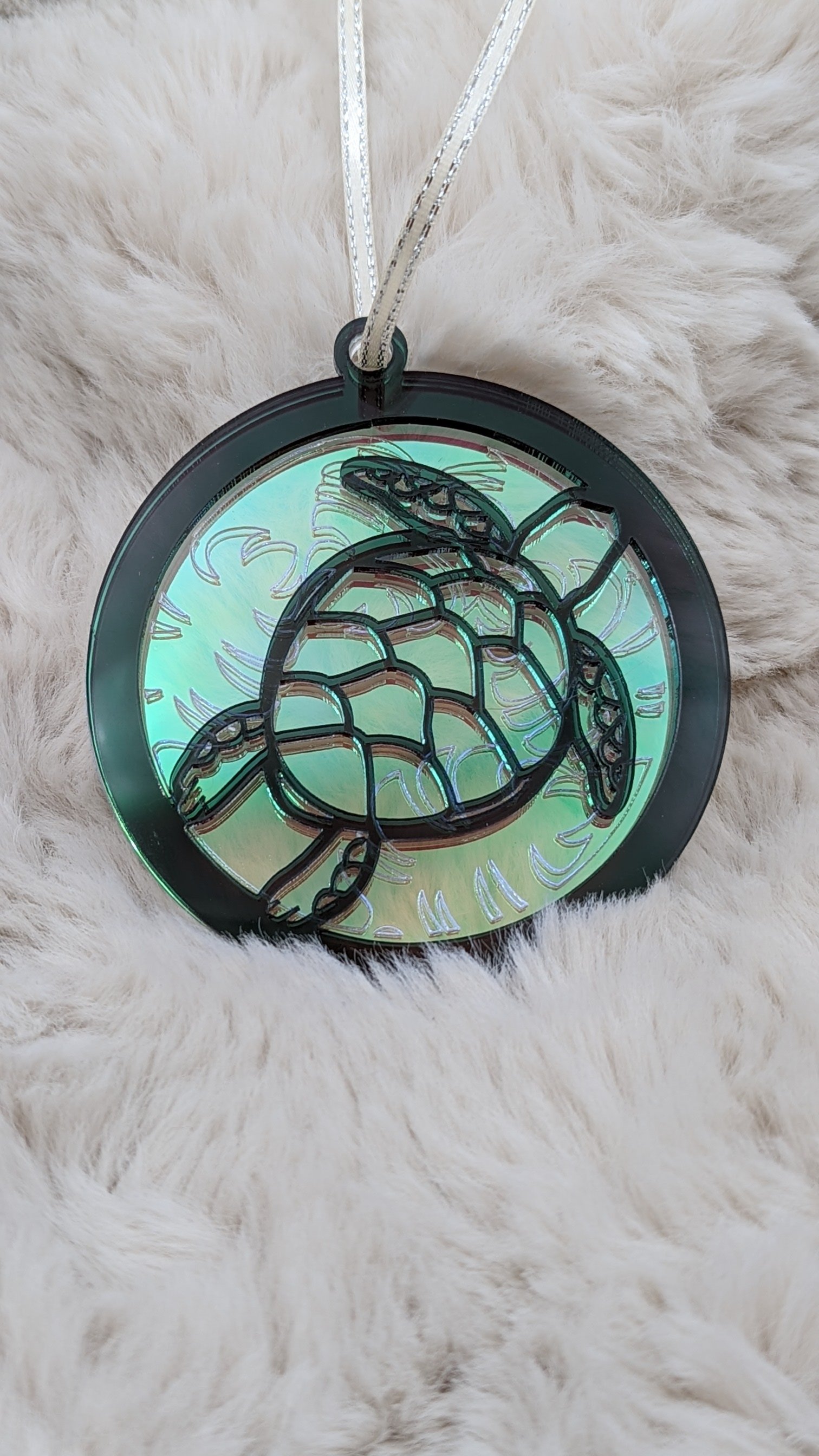 This is a 4-layer template of circular charm of sea turtle on tropical leaves. You can use it as necklace charm, bracelet charm, ornaments, wall decoration at the living room or in front of your door.