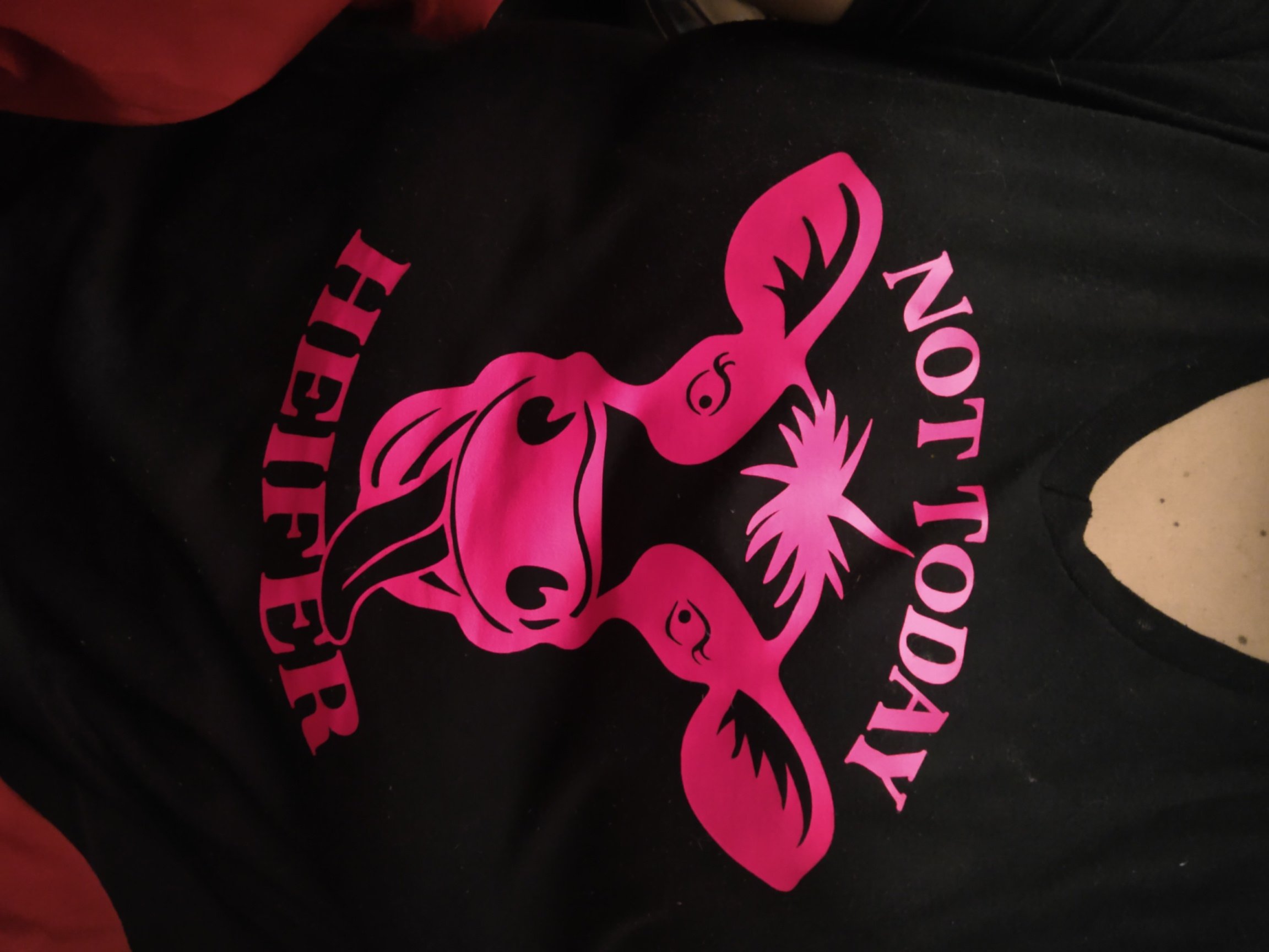 A funny animal SVG design! This design says, "Not Today Heifer" and features a big cow head with tongue sticking out!