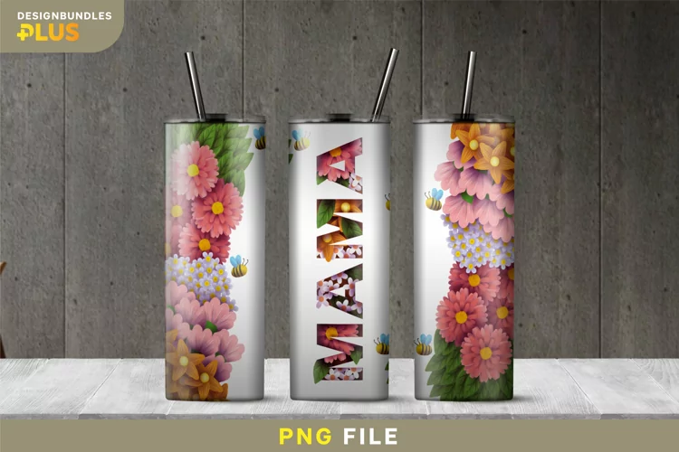 This is a template of "MAMA" text with colorful flowers and bee illustration. It is intended for 20 oz. straight/skinny tumbler. Not all tumblers are the same size, so be sure to check the dimensions.