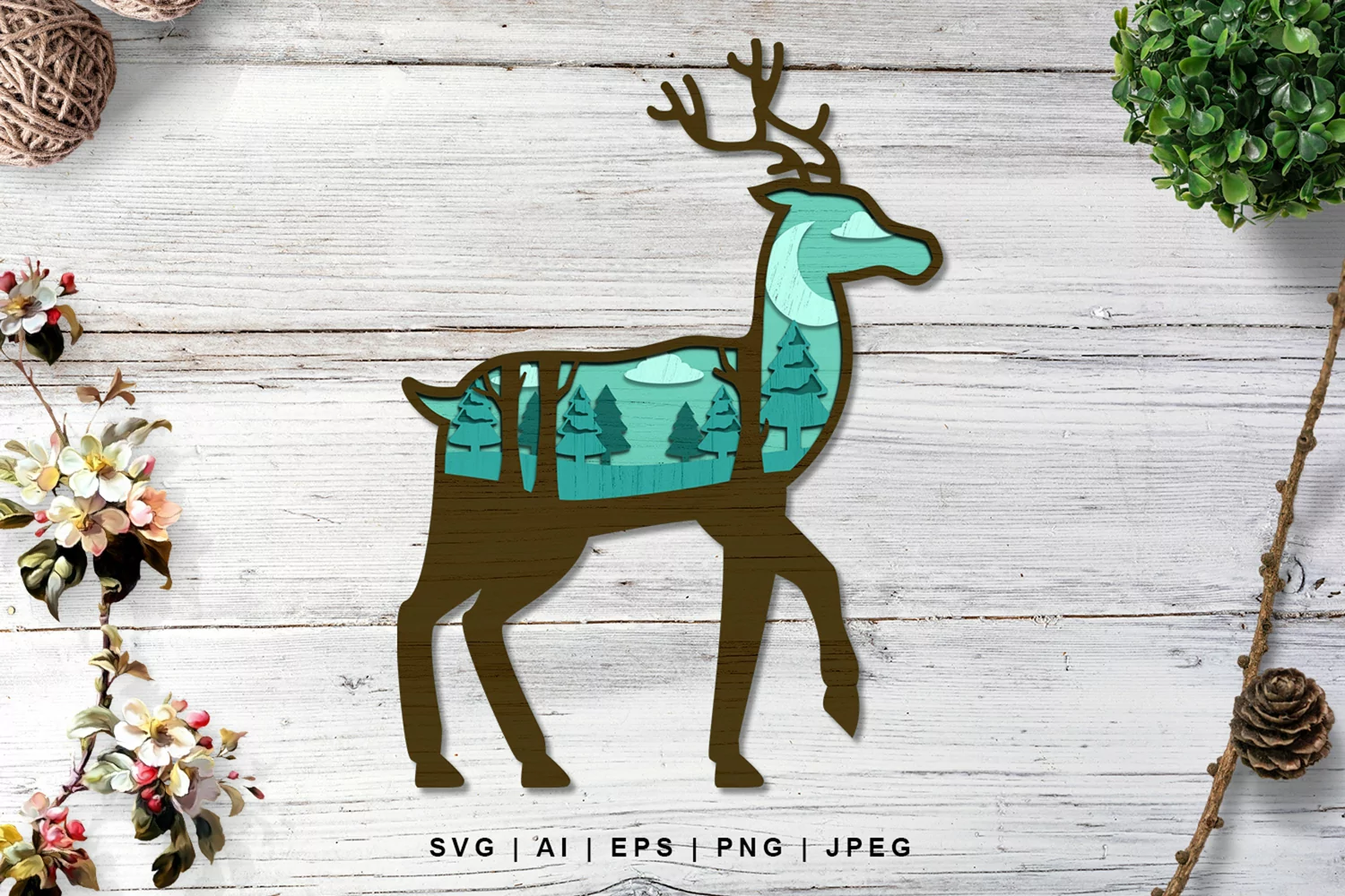Here we have a 5-layer lasercut design of walking deer that decorated with beautiful landscape.