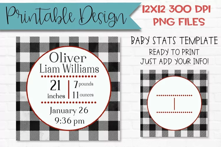 Plaid Baby Stats Sublimation | Buffalo Plaid Baby Printable