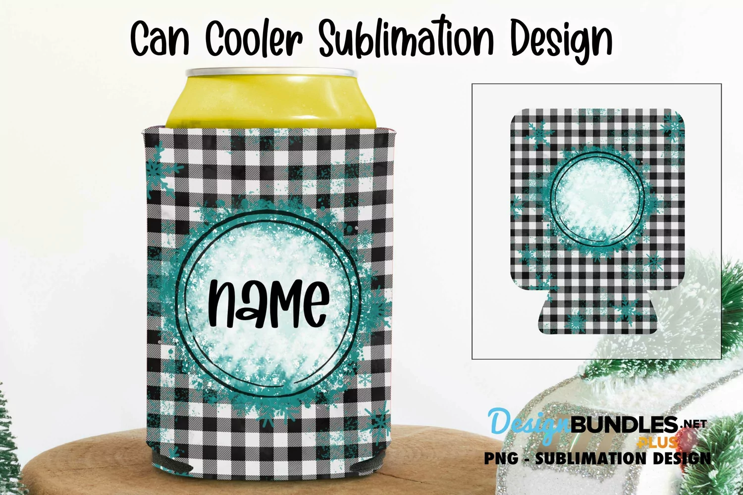Buffalo Plaid Snowflakes | Sublimation Can Cooler Design example image 1
