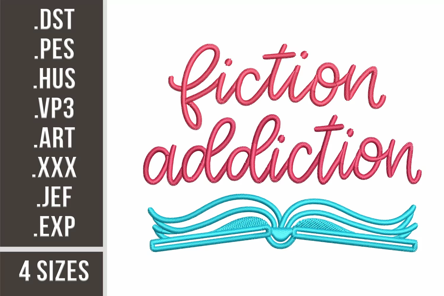 Fiction Addiction| Book Reading Embroidery Design example image 1