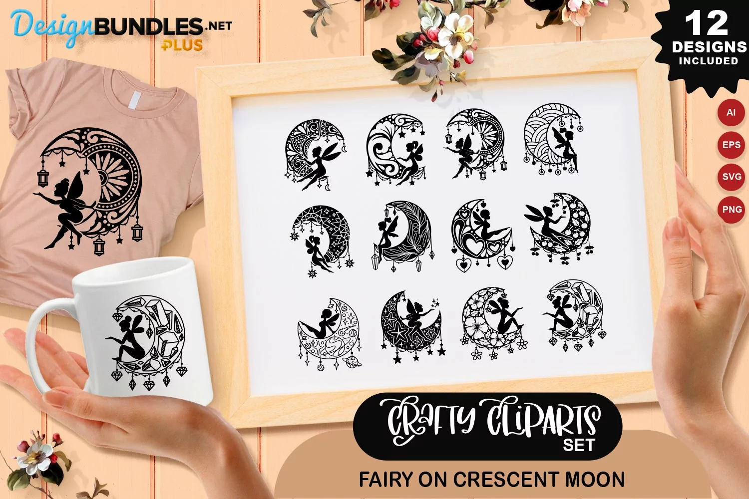 Fairy on Crescent Moon Clipart Set