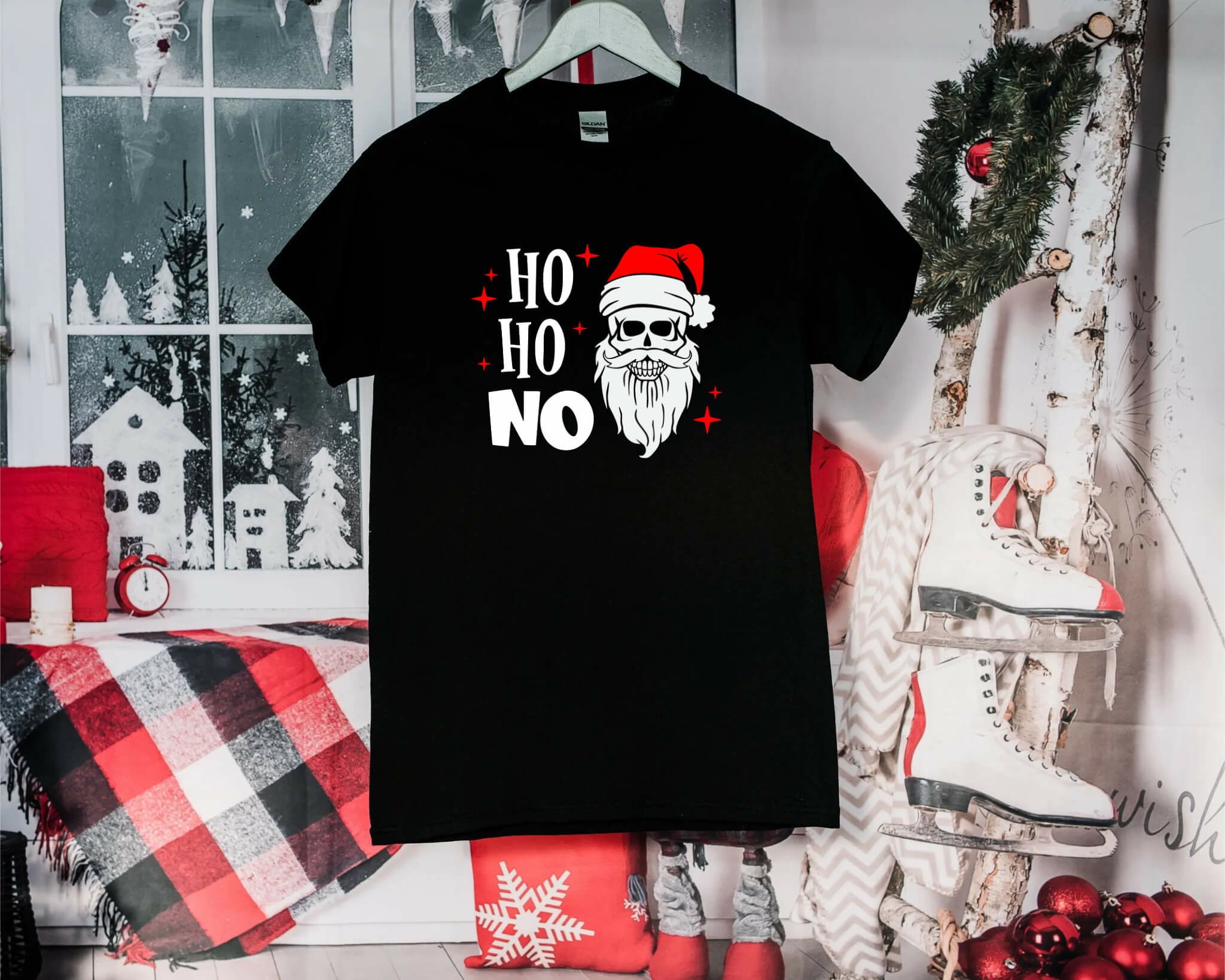 A creepy Santa skull SVG for Christmas with, "Ho Ho NO" text!
