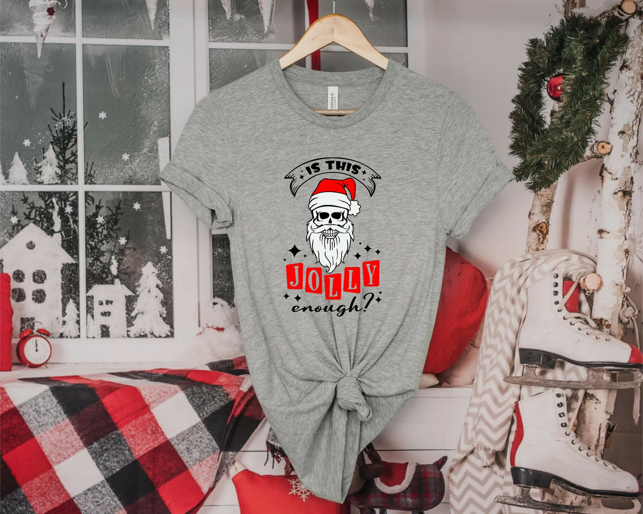 A creepy Santa skull SVG for Christmas with, "Is This Jolly Enough Santa" text!