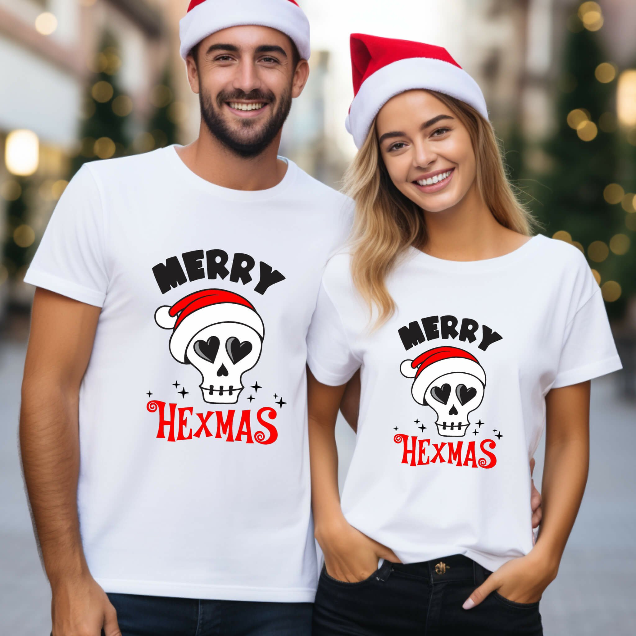 A cute Santa skull SVG for Christmas with, "Merry Hexmas" text!