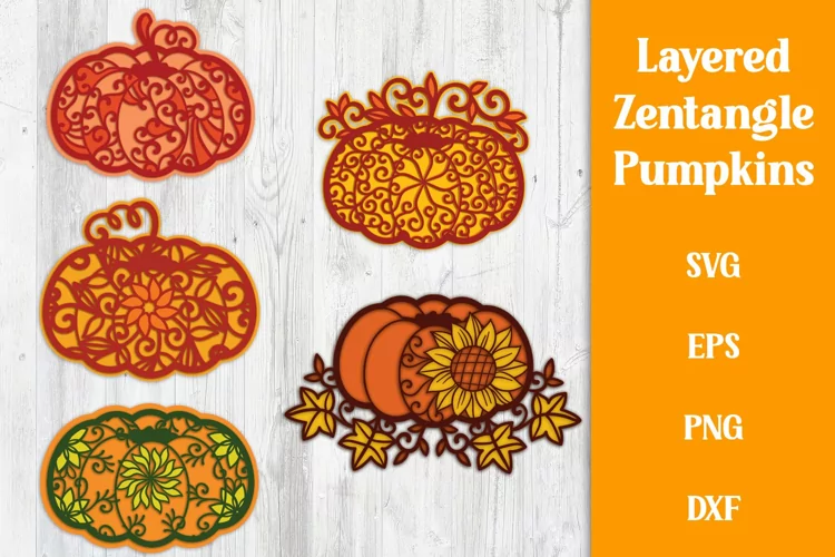 All items are in EPS SVG PNG and DXF formats, and each pumpkin has its own folder. The layered are numbered from bottom one to top one within each folder. Also, in this bundle you will find an EPS document containing all the pumpkins.