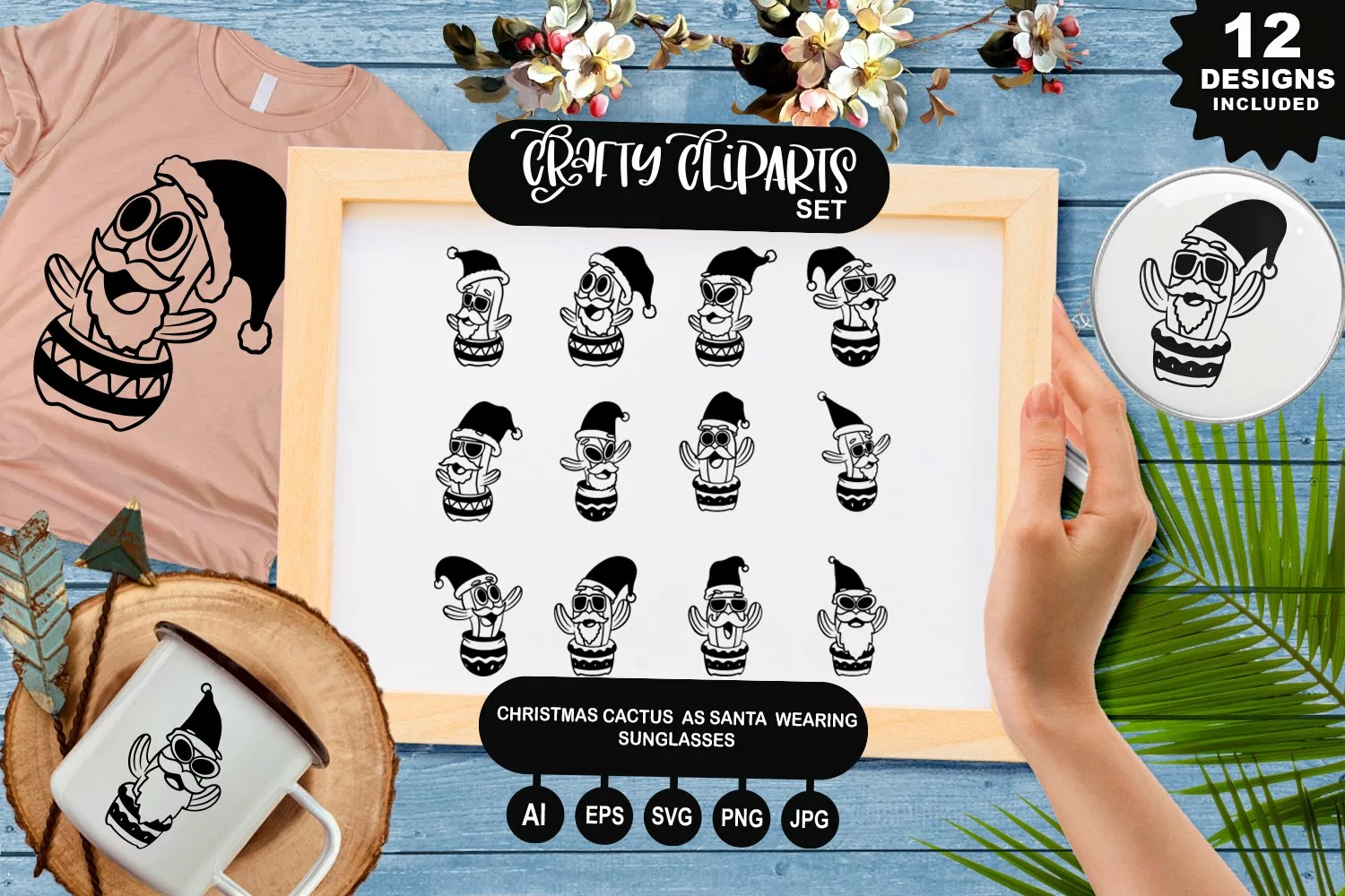 Christmas Cactus As Santa Wearing Sunglasses Clipart Set example image 1