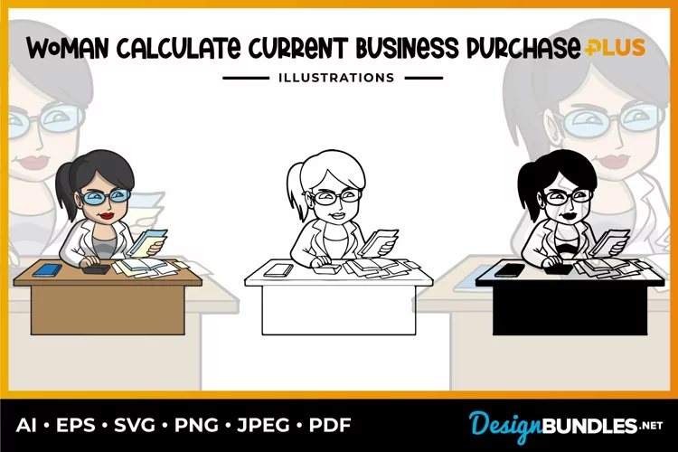 Woman Calculate Current Business Purchase Illustrations example image 1