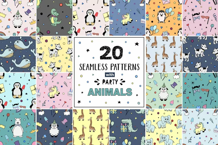 20 seamless patterns PARTY Animals