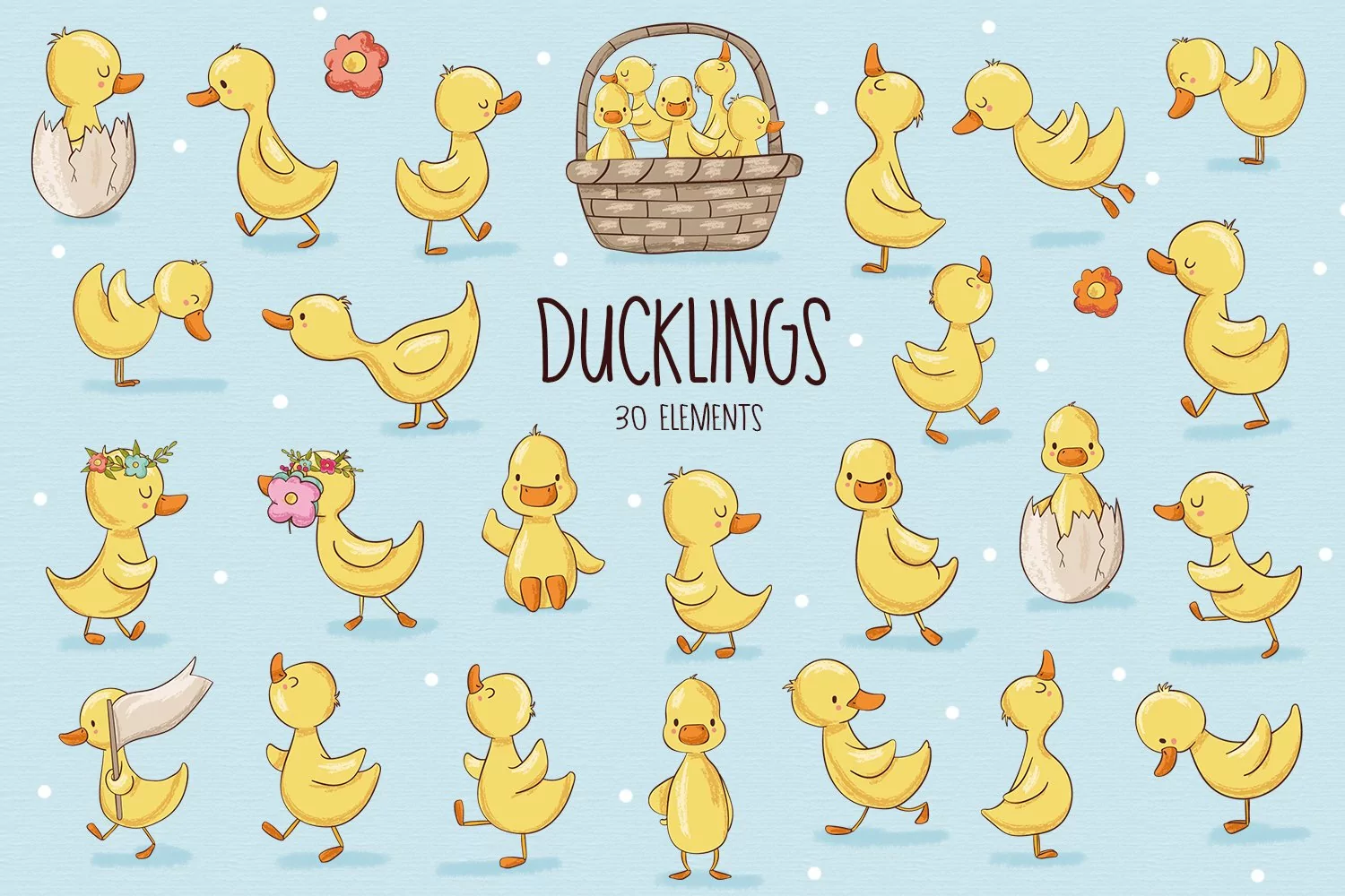 Ducklings includes 20 elements, perfect for prints, giftware and patterns!