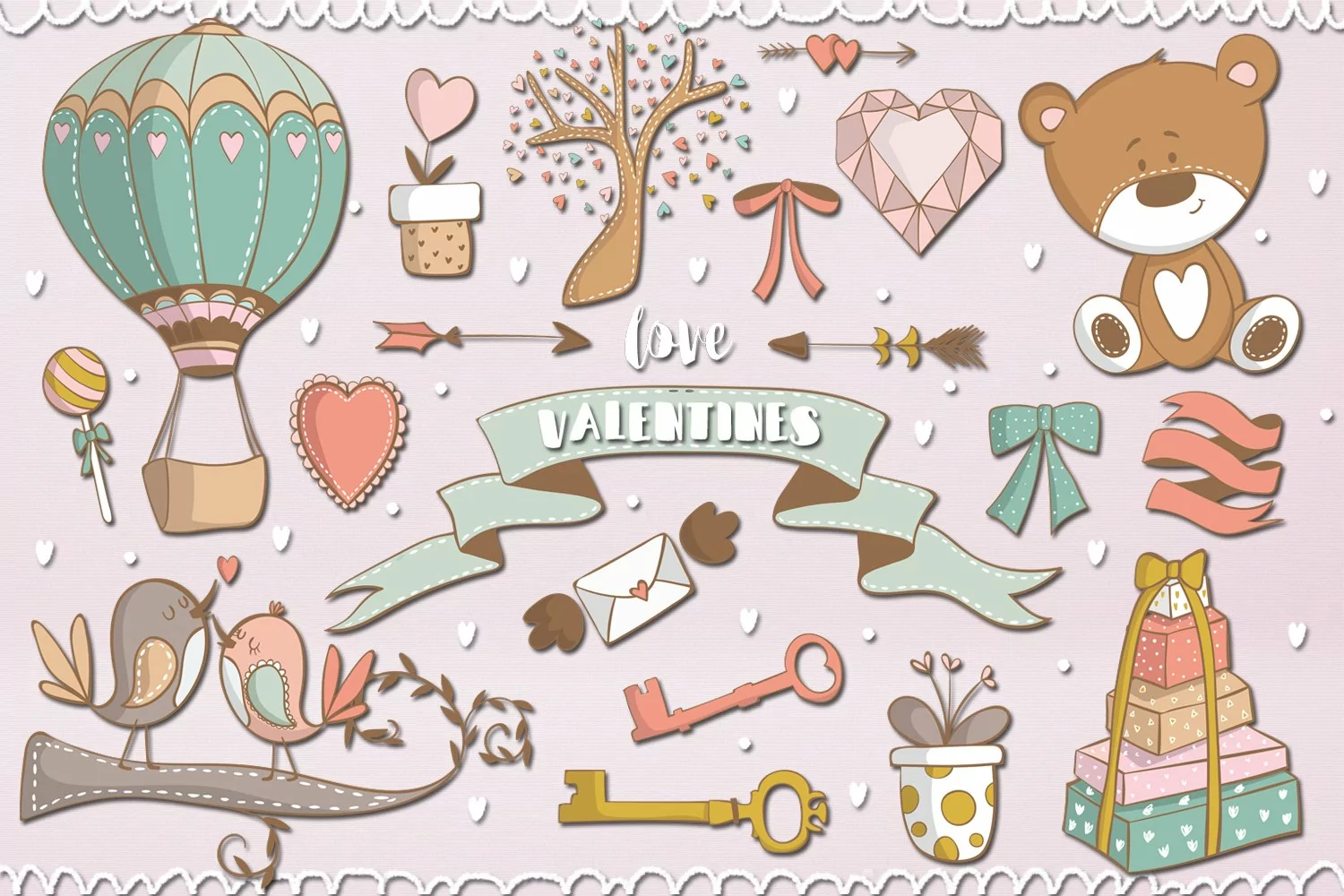 Love Valentines design pack includes 20 love inspired designs for Valentines Day, perfect for prints, kids giftware and patterns!