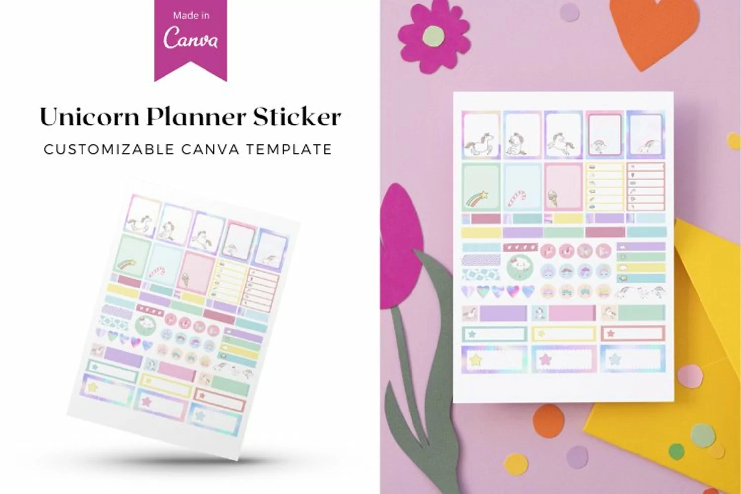 Do you love planning out your day with stickers? Get creative with your planner! This Unicorn Planner Sticker Canva Template is perfect for planners. Add a little bit of magic to your planner with these easy to use templates and transform your planner into an adorable unicorn planner!