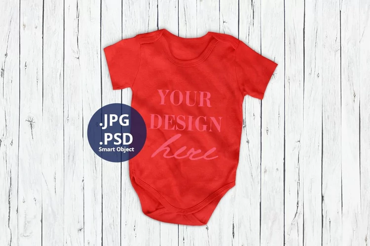 Need a minimalist PSD mockup for your baby styled designs? Then this Red Baby Bodysuit Mockup on Removable Minimalist Background could be what you're looking for!