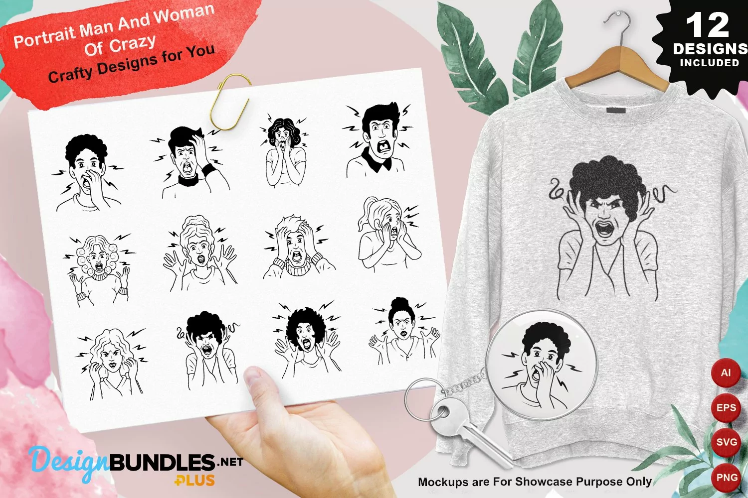 Portrait Man And Woman Of Crazy Clipart Set example image 1