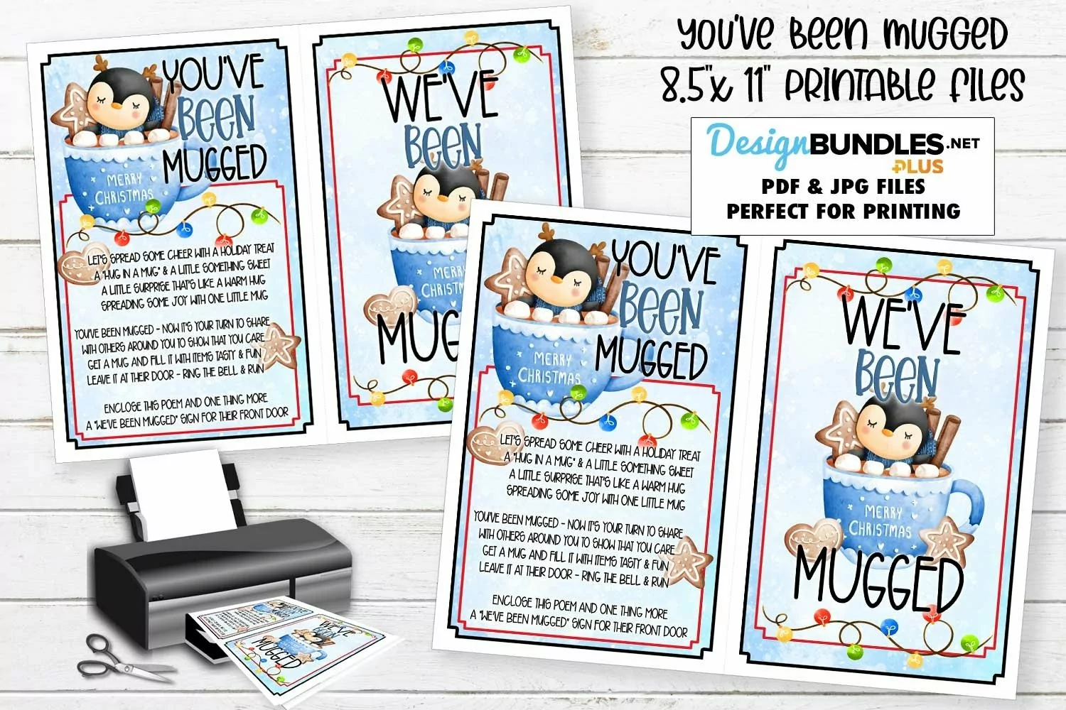 Each 8.5x11 printable includes instructions and the sign to be placed on the door or window of the family being mugged. Files include a jpg and pdf file and both images will print on one page, the page just needs to be cut in half after printing. Print whichever one you choose.