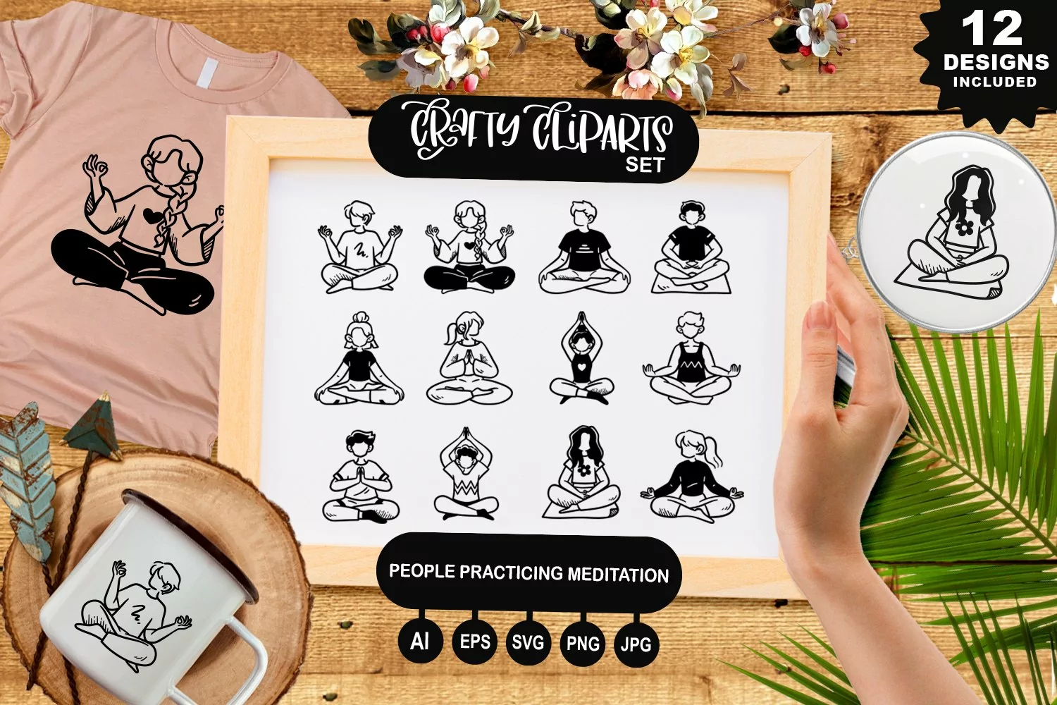 People Practicing Meditation Clipart Set example image 1