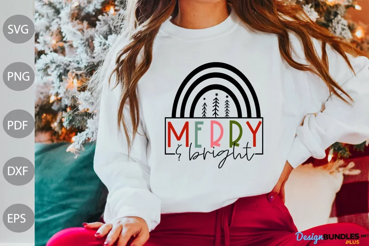 Merry and Bright SVG Cut Files - Christmas SVG Design