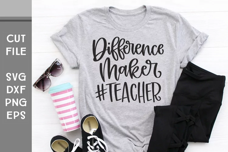 This is a hand lettered cut file. It reads, "Difference Maker #Teacher."