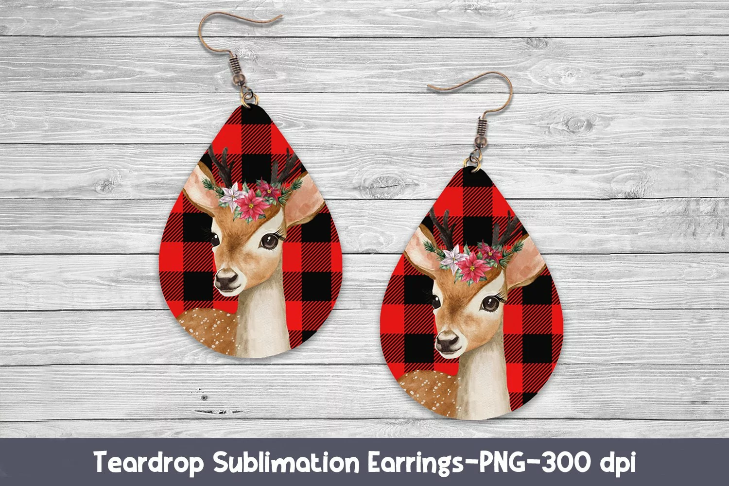 Christmas Earrings Sublimation. Cute Christmas Deer. Teardrop Earring.