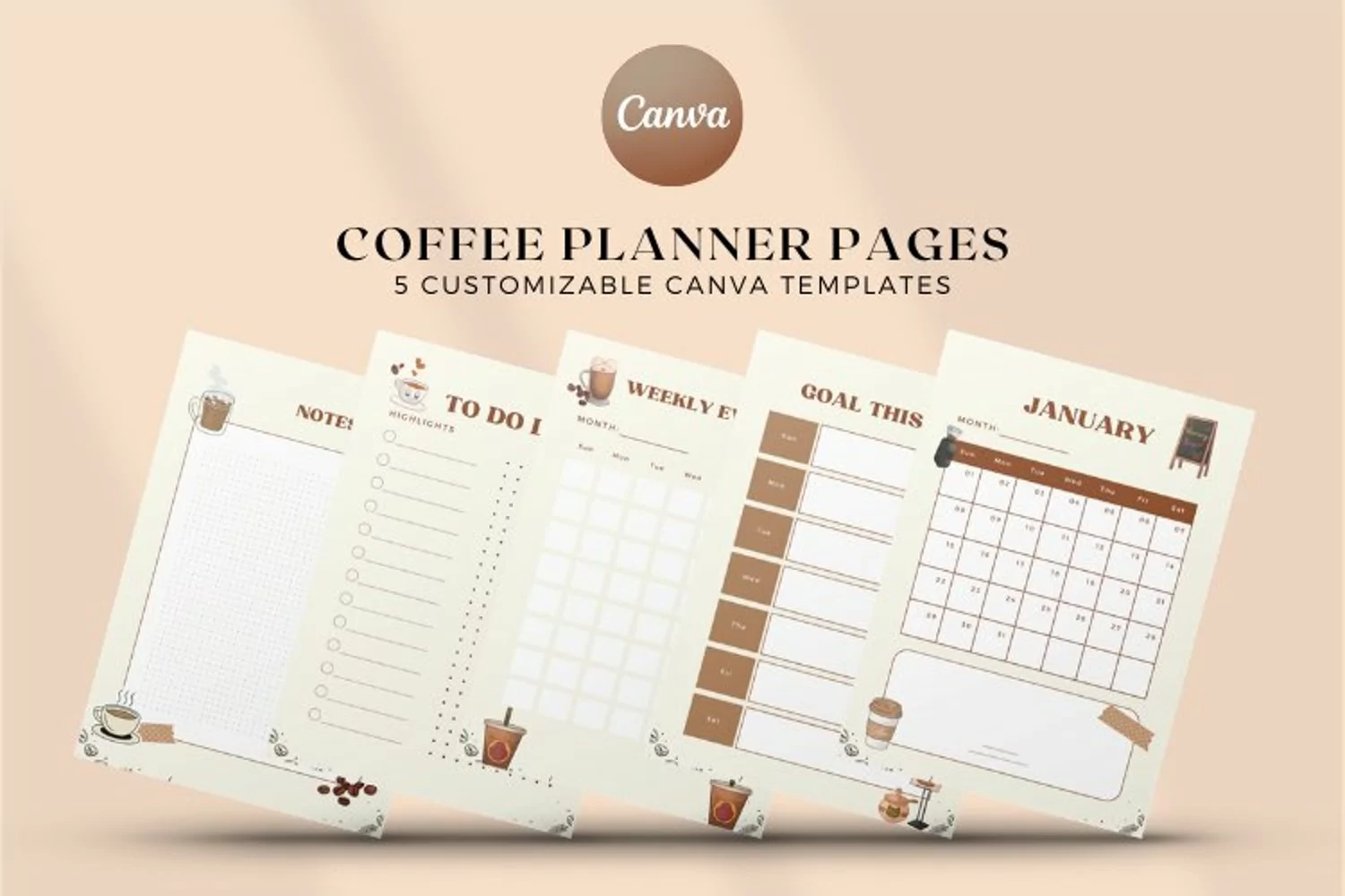 Have you been frustrated with your old template and want a new one? Good news! We have the solution for you. Our Coffee Planner Pages Canva Template is perfect for you so that you can plan ahead of time. It's easy to use and will make things a lot more fun. Try it out today!