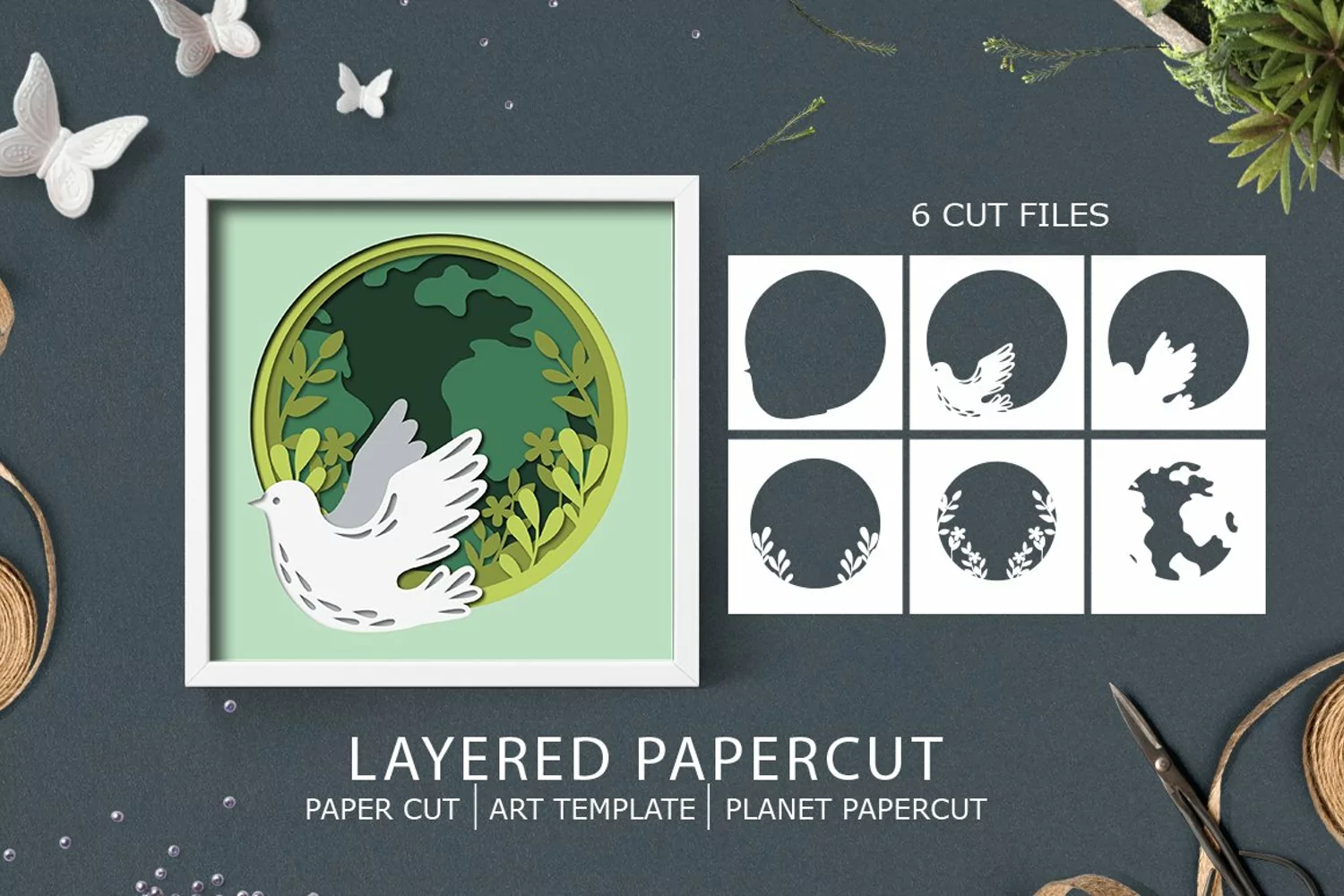 Planet and Dove layered paper cut / earth layered paper cut