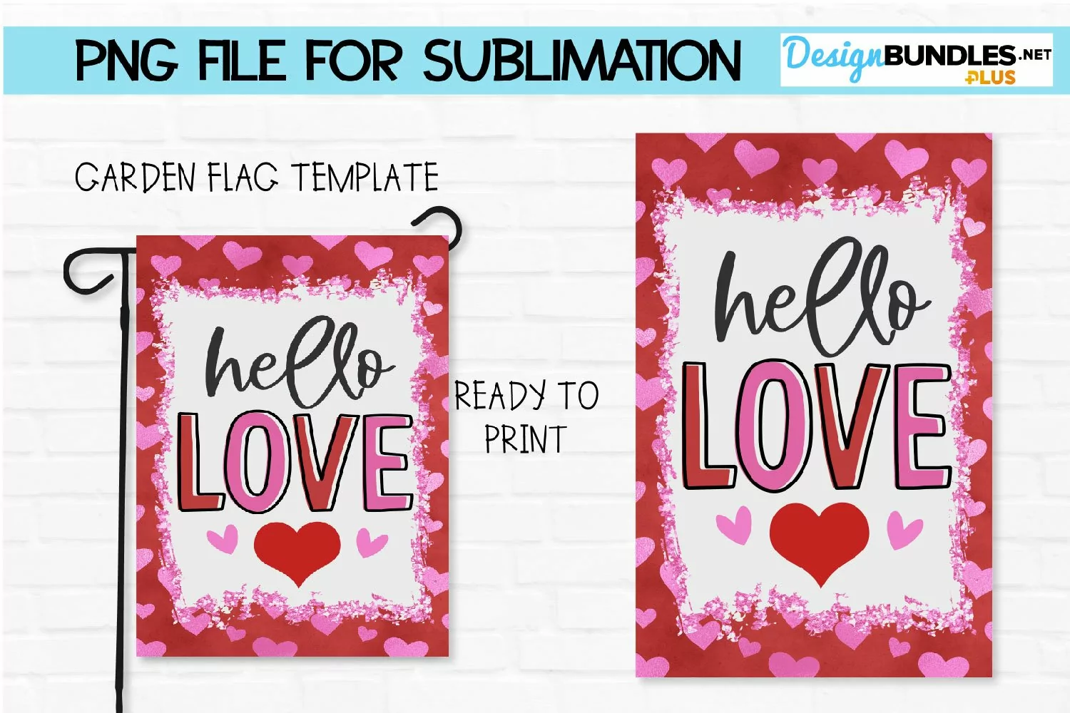Valentine Garden Flag Template PNG | Sublimation Hello Love