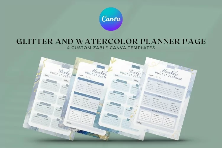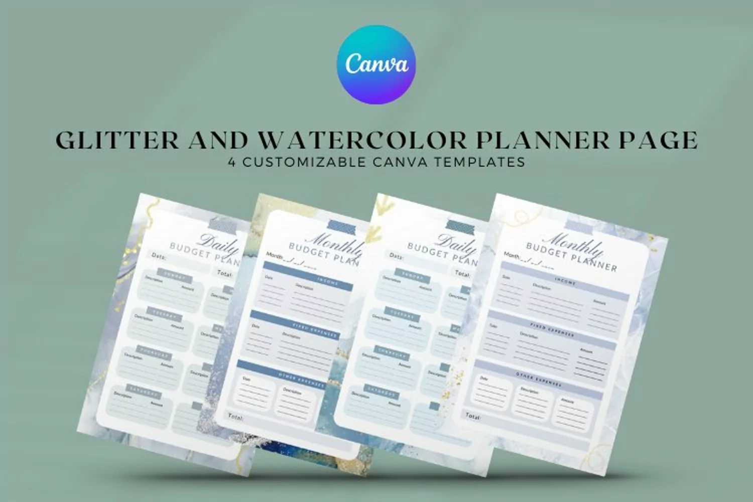 Is it time to get organized? Let your creativity shine with the Glitter and Watercolor Canva template! This planner page design is perfect for all types of schedules. Whether you're a student, business owner, or artist, you'll love this template! You can choose a design that matches your personality by deciding on a background.