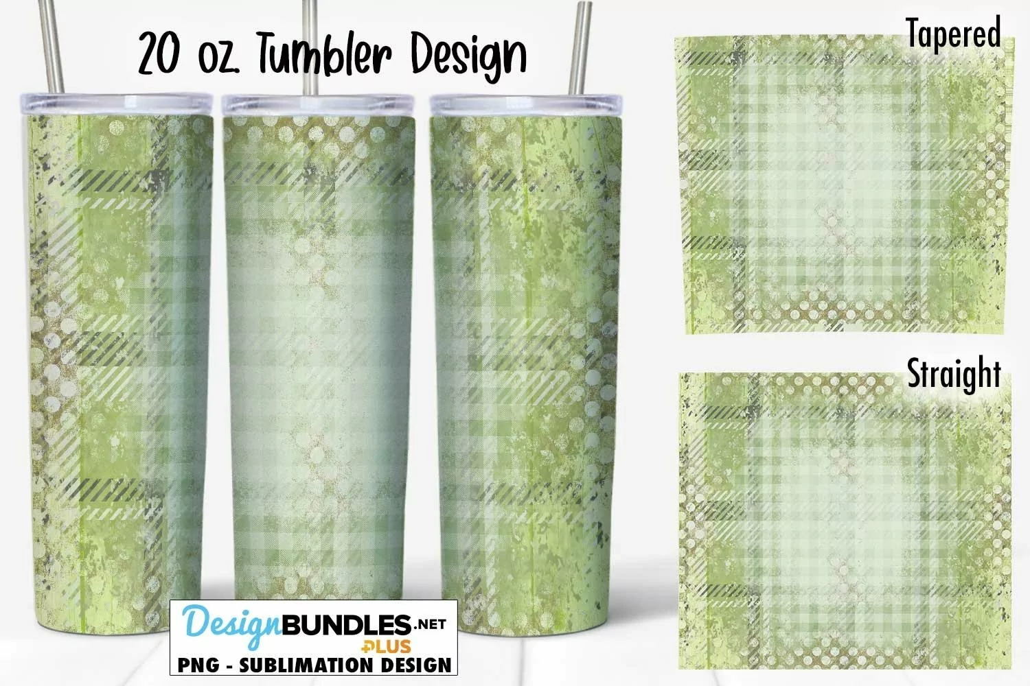 Green Plaid Polka Dot Grunge 20 oz Tumbler Sublimation Wrap