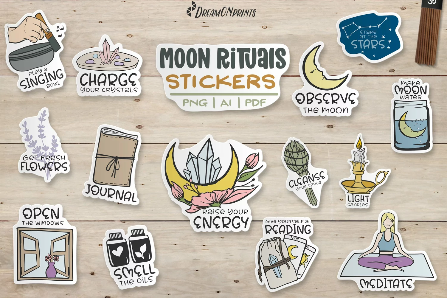 Moon Stickers Bundle with 14 designs. You can use those as stickers, patches, puns or many more for your cool projects.