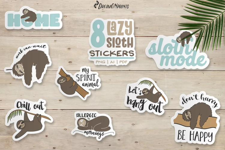Sloth Stickers Bundle with 8 designs. You can use those alphabet letters as stickers, patches, puns or many more for your cool projects.