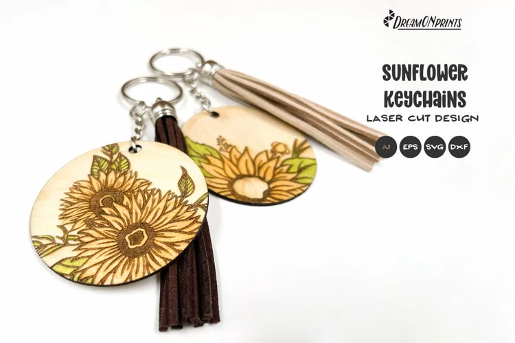 Set of 2 keychains with sunflowers for laser cutting machines