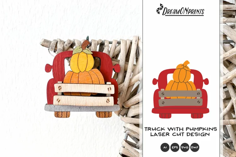 The finished fall truck ornament is set to approx. 6x6 cm but you can resize it as you wish.
