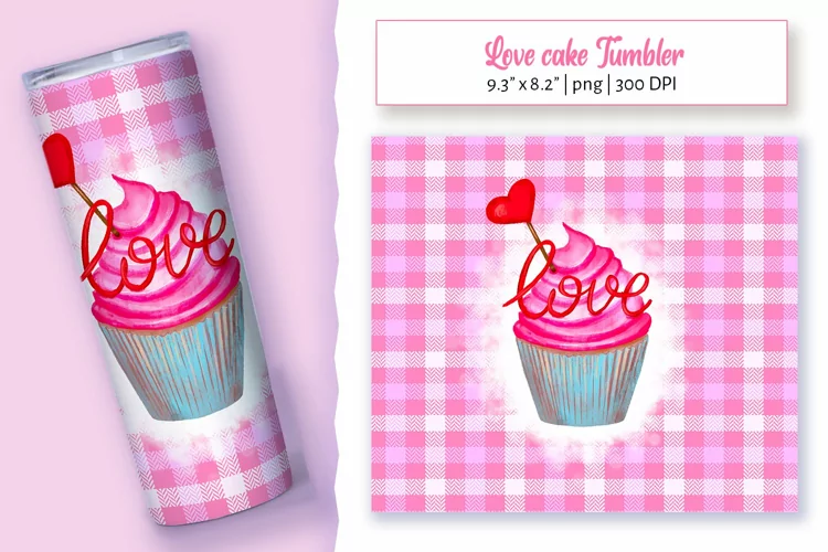 Valentine Tumbler with Love cake. 20Oz tumbler design