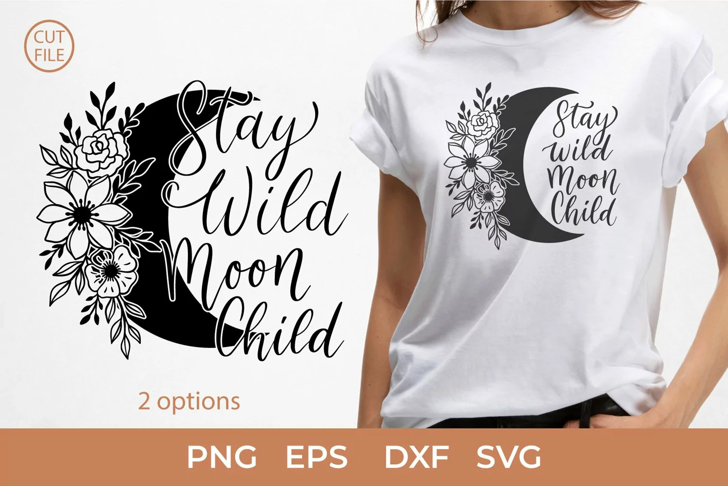 Stay Wild Moon Child SVG, Crescent Moon Quote SVG, Boho SVG, Crescent moon with flowers SVG, celestial SVG Cut Files. Crescent moon and Moon Child quote SVG files. Floral moon cut file for printing, t-shirt design and wall art.