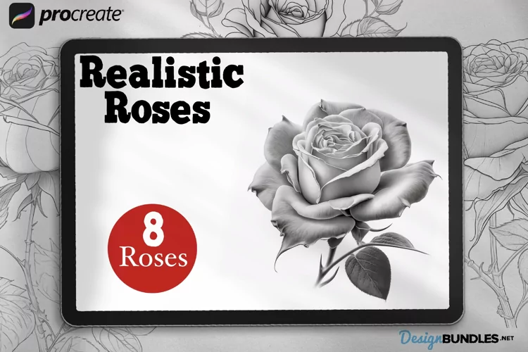 8 realistic rose sketches, detailed and high quality! fun coloring projects and great rose references!