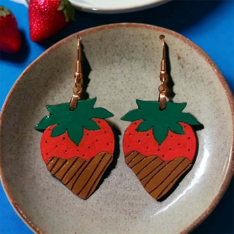 Chocolate Covered Strawberries Earrings | Laser File
