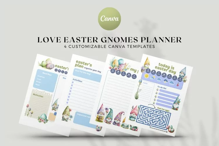 Get organized and plan for Easter with the help of our Love Easter Gnomes Planner Canva Template! With this fun and colorful template, you can easily keep track of all your upcoming tasks and events. Make your Easter even more special, with the help of Love Easter Gnomes Planner!