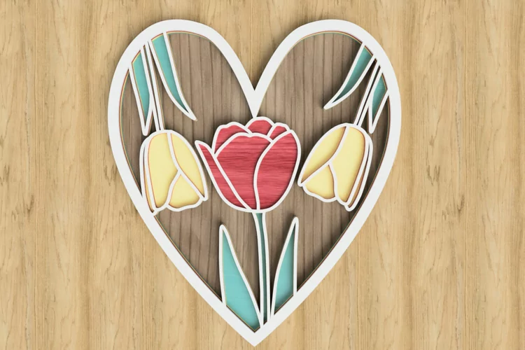 Spring Laser Cut File - Layered Heart With Tulips