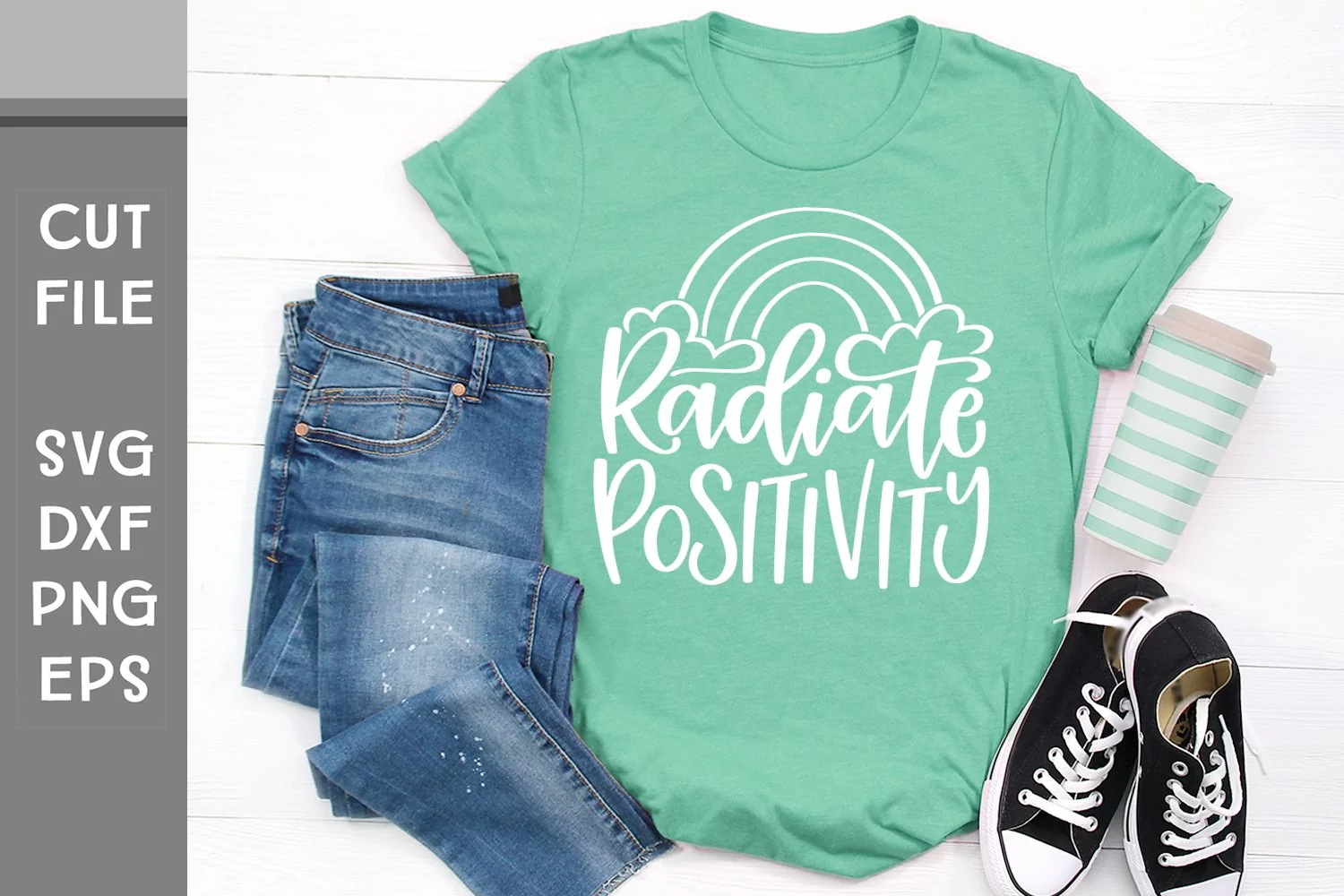 This is a hand lettered cut file. It reads, "Radiate Positivity."