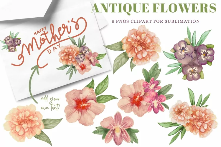 Features 6 sublimation florals & bunches with beautiful arranged antique colored watercolor flowers . Individually saved for ease of use, these springy elements are perfect for your fabulous designs.