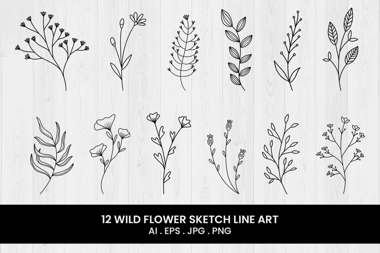 This is a Wild Flower Sketch Line Art with 12 variations