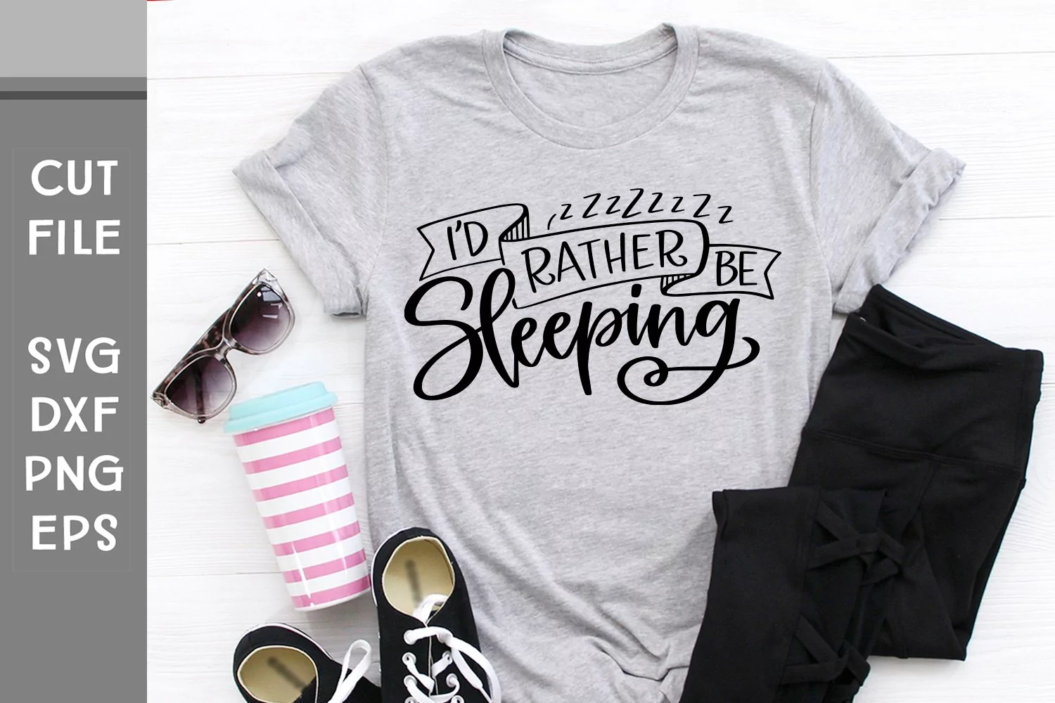 This is a hand lettered cut file. It reads, "I'd Rather Be Sleeping."