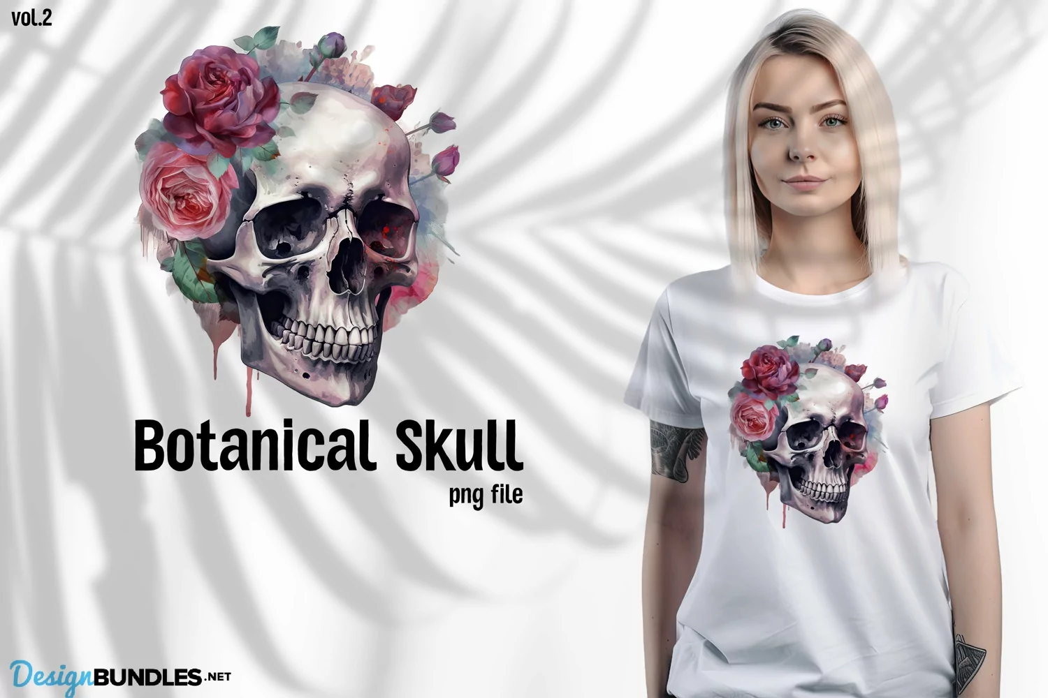 Botanical Skull, watercolor skull design, png file