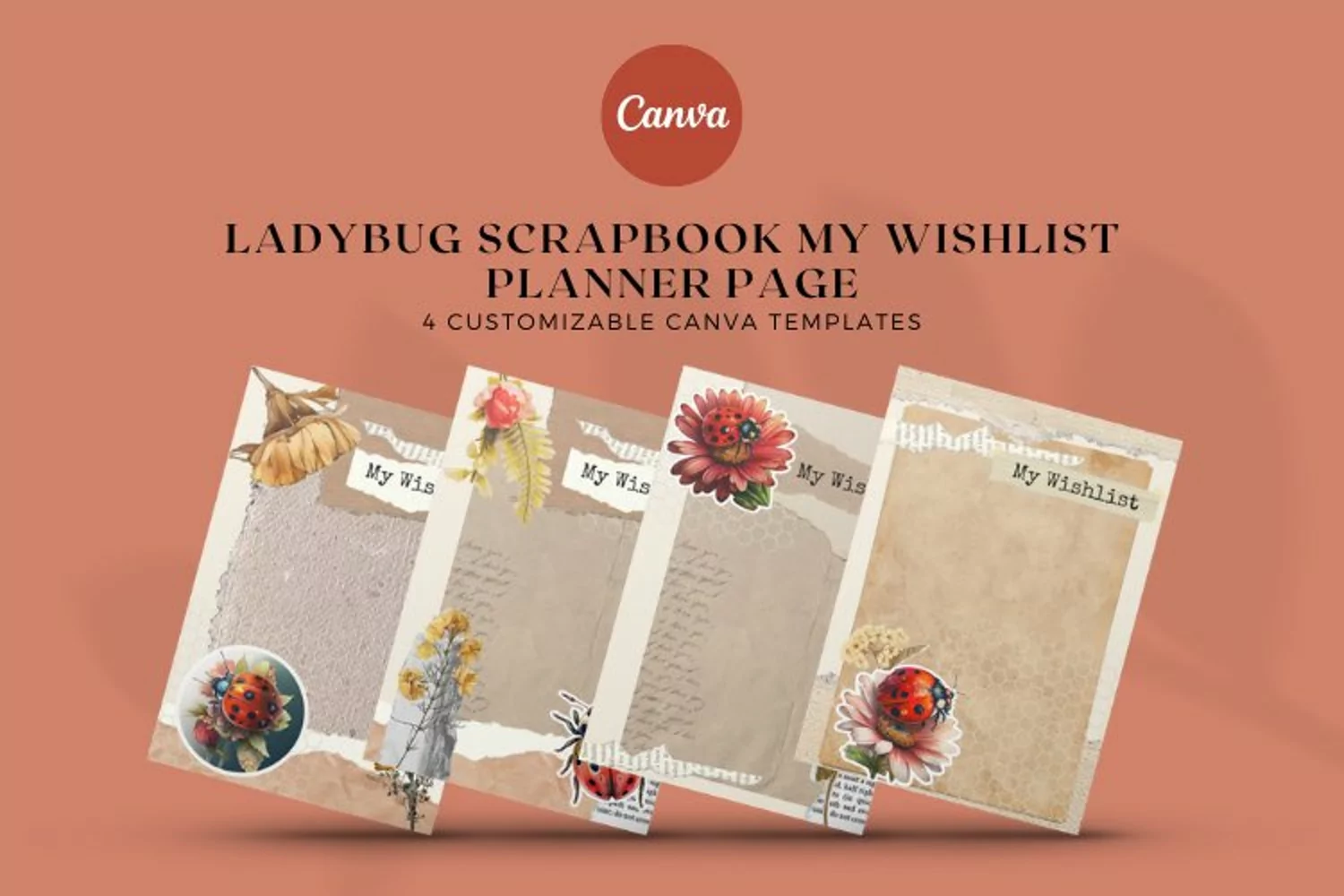 With Ladybug Scrapbook My Wishlist Planner Page Canva Template, you can take your dreams and turn them into reality! Create custom designs, share with friends and family, and never miss a moment of inspiration. Let Ladybug Scrapbook My Wishes help you make your dreams come true!