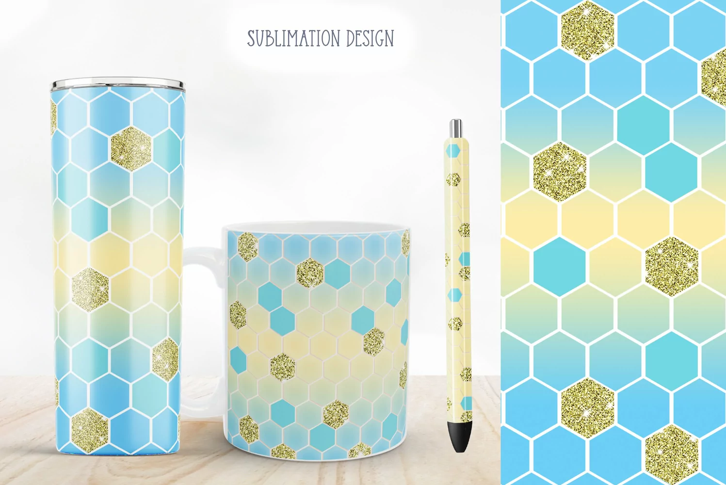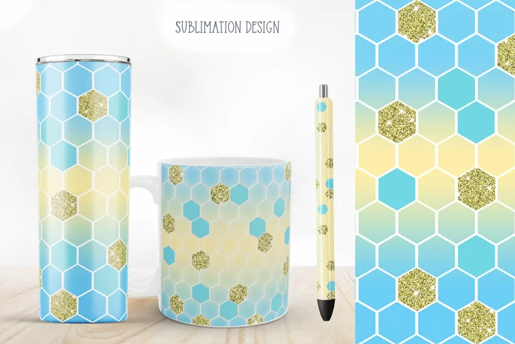 Blue Honeycomb with Gold Glitter Summer Sublimation Design