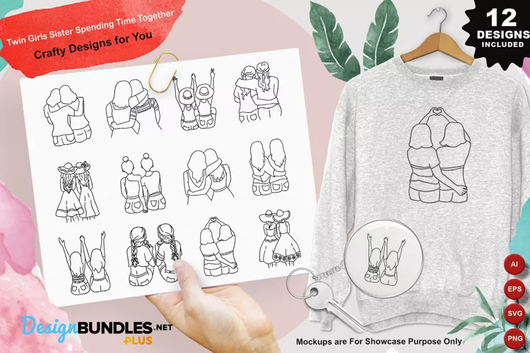 Clipart Clipart Bundle Clipart Set Girls Clipart Clipart Svg Twin Girls Clipart Twin Girls Sister Clipart Time Together Clipart Spending Time Together Clipart Identical Clipart